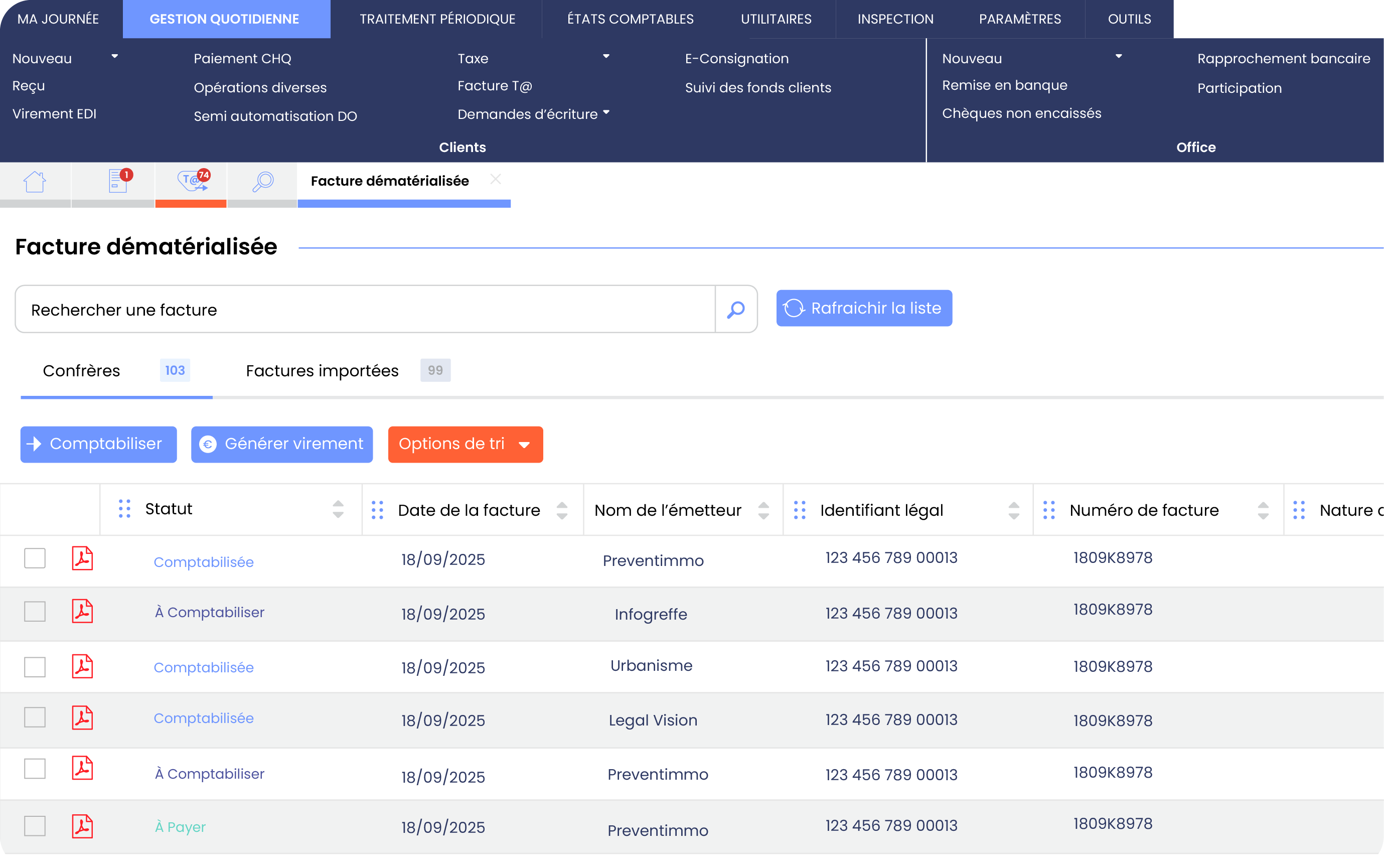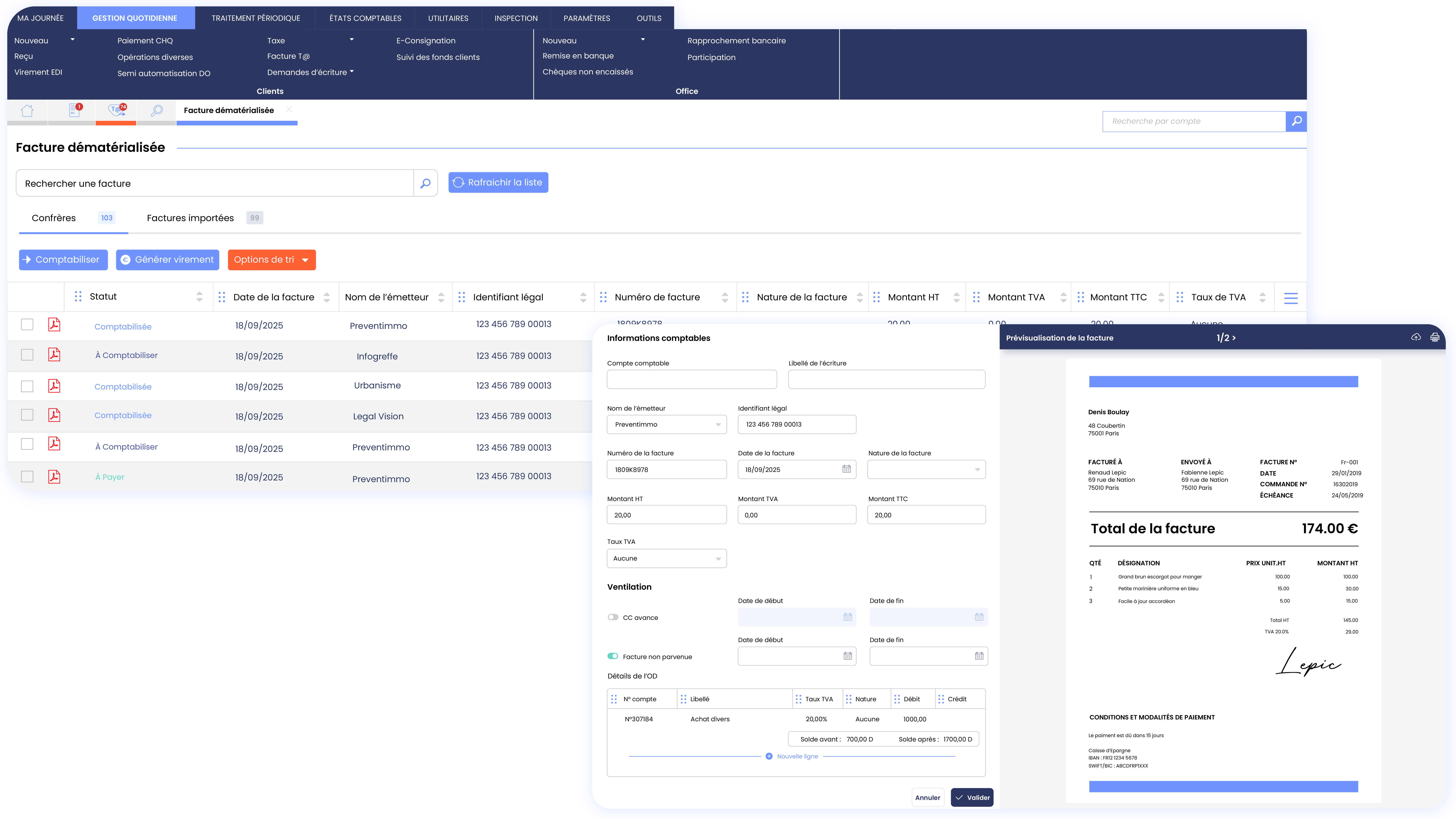 Émettez et recevez vos factures électroniques directement dans votre logiciel de comptabilité notariale Inot Compta.